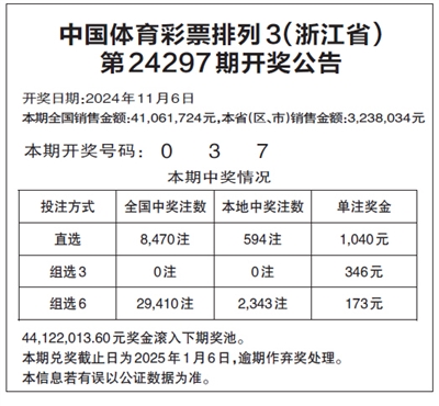 中国体育彩票排列3(浙江省)