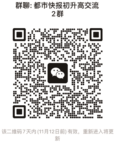 接下来,为了帮更多家长了解更多初升高备考信息,破解升学焦虑。欢迎扫码加入都市快报初升高交流2群。