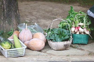 橙友“散步者”: 临安指南村村口,村民在卖自家种的蔬菜,好诱人,都想扛回去。