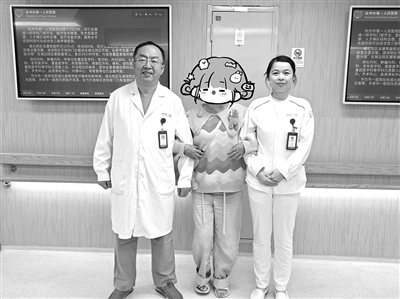 小彭出院前开心地和侯主任、护士长合影留念