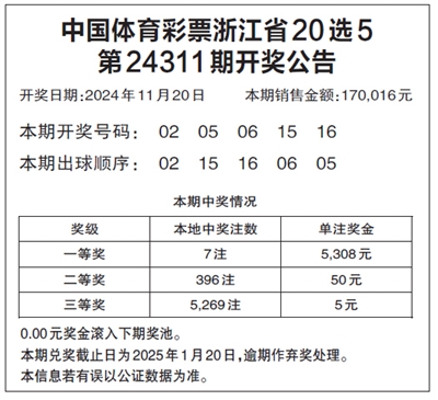 中国体育彩票浙江省20选5