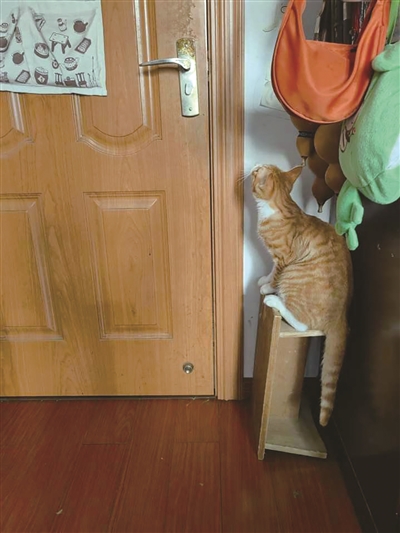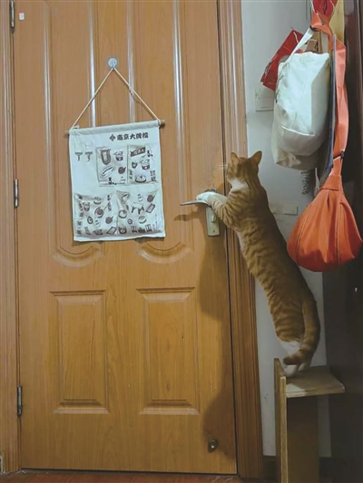 小猫观察我们开门,学习如何操作门把手,慢慢地,小猫学会了开门。啊!那真是太有趣了,它用小爪子用力一抓,身子挂在门把手上,门就“吱呀”一声开了。太神奇了,小猫真是太聪明了,我都忍不住给它点个大大的赞!