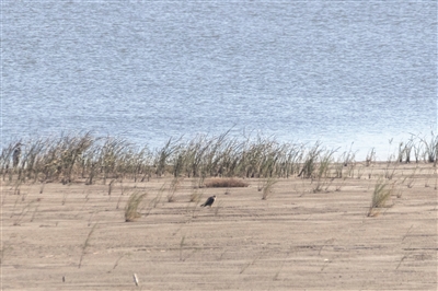 当我们准备离开时,湿地中的岛上站着一只鸟,岸边的水鸟纷纷远离。吴晓丽拿起观鸟望远镜看了看,向我们介绍,那是游隼,也是猛禽,所以四周的野鸭、水鸟都离得远远的。