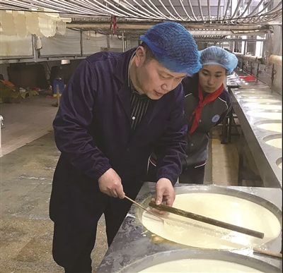 刘益平说,做豆腐皮看起来轻松,其实是一个很有含金量的活: