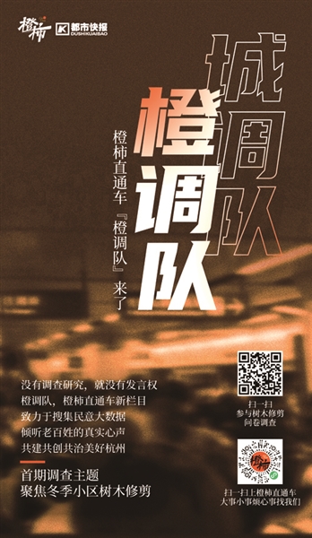 为了更及时、深入、准确、系统地了解民意,进一步提升民意收集的广泛性、及时性、有效性,橙柿直通车推出子栏目——橙调队,昨天正式启动。橙调队是以橙柿直通车记者团队联动社会专业调研力量、高校志愿者和社会热心人士组成的调研队,就市民关心的问题进行广泛调研。橙柿互动“橙调队”第一期“橙调”主题聚焦冬季小区树木修剪。