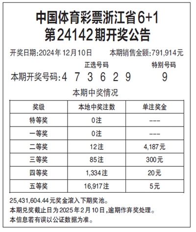 中国体育彩票浙江省6+1