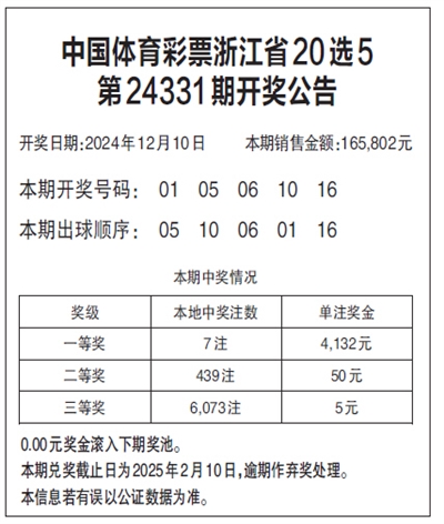 中国体育彩票浙江省20选5