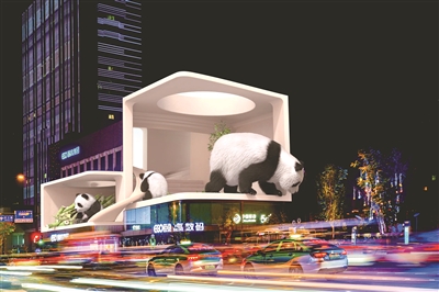 熊猫一家“爬”上文三街3D大屏 西湖文旅集团供图