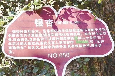 橙友“Jerrymma”:临安指南村古银杏树的标牌上有错别字:1.银杏果的“果”写成了“某”;2.“公孙树”的引号少了后面半个。我看了两块牌牌,错误是一样的。不是故意要找茬,也不是什么大事,大家都看得懂的。但从另一个方面来说,指南村也是远近闻名的吧,细节还是要注意一下的。
