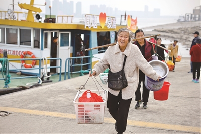 橙友@散步者在橙友圈分享:萧山闻堰渡口,是钱塘江上仅存的几个渡口之一,仍然保留了上世纪八九十年代的样子。在这里,人们通过渡船往返闻堰——袁浦两地,买卖生活用品和果蔬江鲜。这里的渡船,无需预约,上船扫码只需要2元钱(单程),就能体验过江的快乐。左图为从闻堰出发,到袁浦下船的乘客。