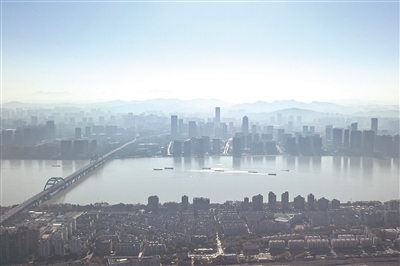 昨天中午,钱塘江附近天空雾蒙蒙的。 记者 陈中秋 摄