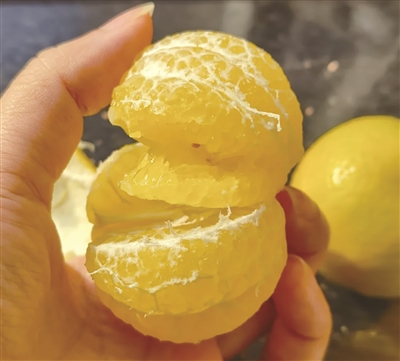 剥完皮,我一整个放在嘴里咬,满口爆汁,清爽又带点甜,在开着空调的房间里,吃起来太舒服了,满身的燥热感瞬间化解,一连吃了五六个。(应巧盈)