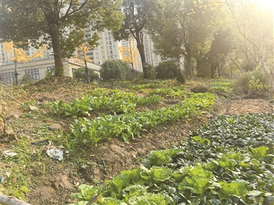 王先生住在顺和悦府小区,出北门就是墩里吴农贸市场,市场周边有一个公园,原先有草坪、有花坛,还有运动广场,但这两年公园没人管理,草坪被一些居民开垦成了菜地。今年情况更为严重,整个公园走进去就是一个菜园子,什么菜都有……