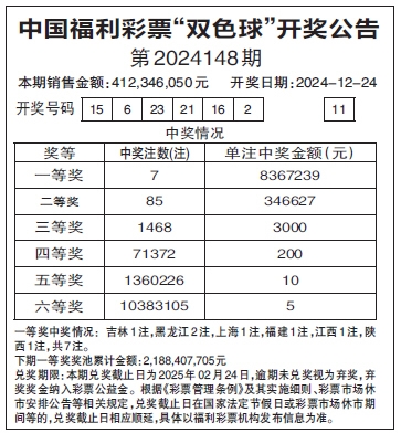 奖等中奖注数(注)单注中奖金额(元)一等奖78367239二等奖85346627三等奖14683000四等奖71372200五等奖136022610六等奖103831055