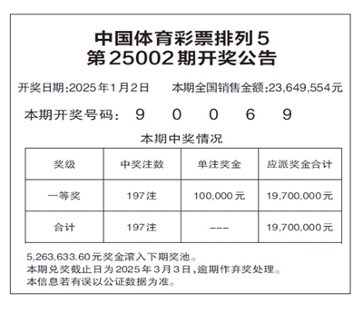 中国体育彩票排列5 第25002期开奖公告