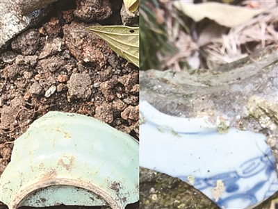 昨天在伍公山看到的瓷片 见习记者 顾心言 摄
