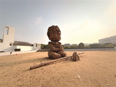 距离美院象山校区不远的艺创小镇象山艺术公社,一个巨型落叶“悟空”已经搭完展出,它的面前还有一根落叶“金箍棒”,被制成了互动性很强的跷跷板。