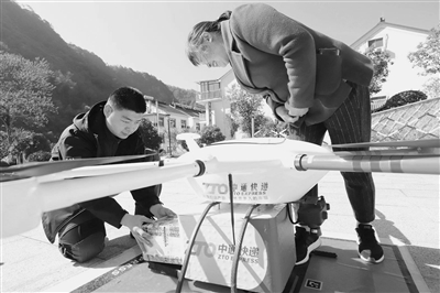 中通快递在桐庐芦茨村尝试用无人机配送快递 记者 宣涛 摄