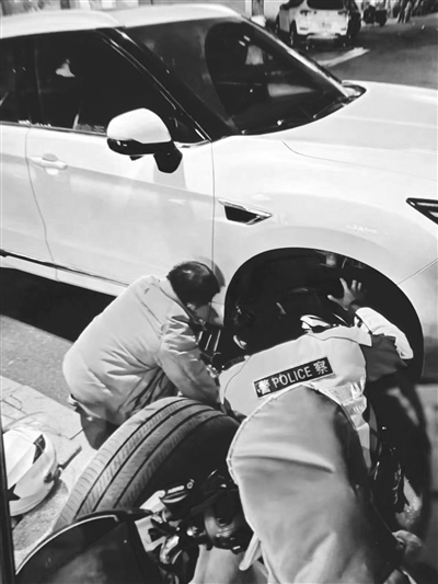 换好车胎后,田警官还提醒这位女士,她车上的备胎是非全尺寸轮胎,速度不能超过80公里/小时,车程不能超过50公里,需要及时更换。(记者 董吕平)