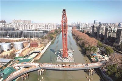 本报讯(记者 许晖 通讯员 鲍圣慧) 小河公园跨运河人行桥工程主桥昨天顺利合龙,这意味着项目已经完成主体结构施工,计划2025年下半年建成开放。