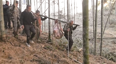 村民和搜救队员合力抬下山