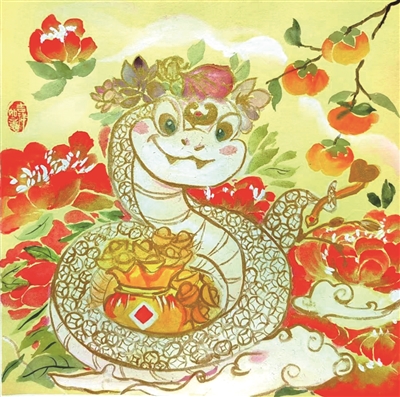 插画狮:《金蛇送福》 杭州市育才登云小学六(2)班 李一诺