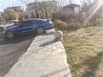 林先生说,晚上很多车子把车停进草坪,破坏植被。或者停进小区停车场,通过草坪直接离开。
