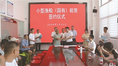 浙银金租成功落地温州市苍南县百艘渔船更新项目,图为承租企业与渔民签订租赁协议。