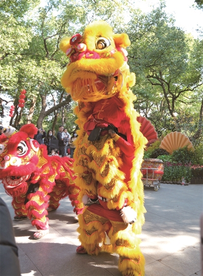 吴山城隍阁景区,精彩的狮子舞表演。 橙友“青橄榄” 摄
