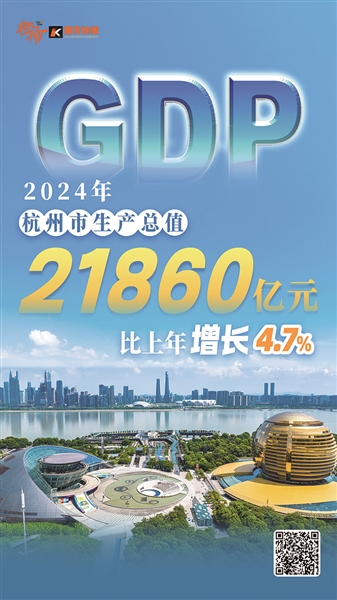 本报讯(记者 邵婷)1月22日,杭州市统计局、国家统计局杭州调查队发布2024年杭州经济运行情况,全年地区生产总值(GDP)21860亿元,按不变价格计算,比上年增长4.7%。