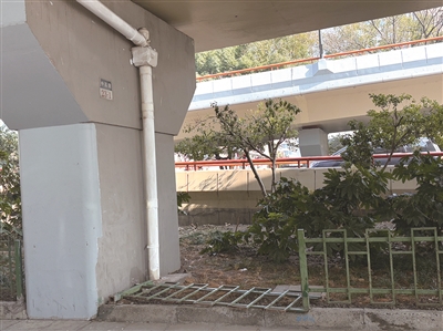 在王女士所说的中高墩23-1一侧,橙柿直通车发现,一段绿色的围栏向内倒在绿化带上,原本用于固定的铁丝已经散开,大概是被撞倒的。
