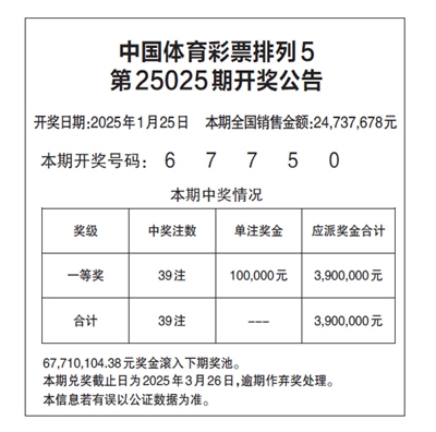 中国体育彩票排列5 第25025期开奖公告