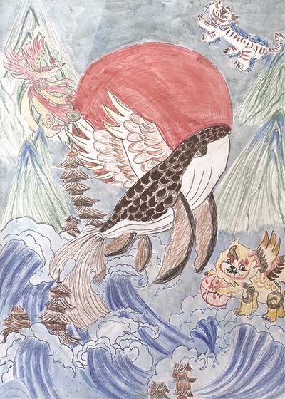 插画狮:《鲲鹏》 杭州市文澜小学三(2)班 赵臻婧