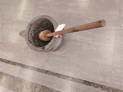 #裕贡拜年#在之江文化中心,看到一处体验打年糕的展位。花了10元,让娃参与了一波打年糕的全过程。最后带走一块自己的劳动成果,今天(注:1月31日)在家吃得很快乐。