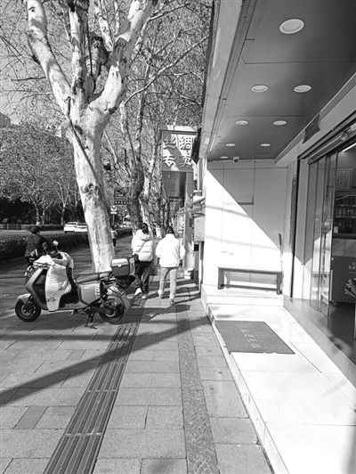 “美宜佳”便利店的店员小文说,这个雨篷经常有人撞到头,一般都是个子比较高的男子,很多人撞到后都是捂着头走了。因为边上有棵树,所以很多人都往中间走。“我也不知道信报箱是谁的,归谁管,这个(雨篷)确实没啥用,最好拆了。”