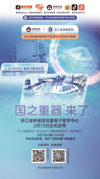 在此之前,2月10日(下周一)15:00-17:00,还有两场浙江省肿瘤医院重离子医学中心启用系列直播,带你全方位了解重离子治疗。