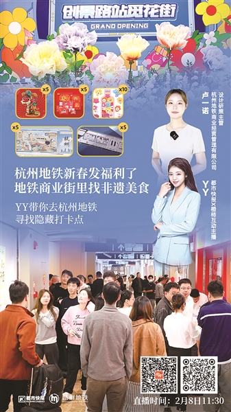 本报讯(记者 岳雁)2025年橙柿互动和杭州地铁的第一波福利来了!今天中午11点半-1点,杭州地铁将和都市快报联合进行直播,在杭州地铁觅花街中寻找福利。