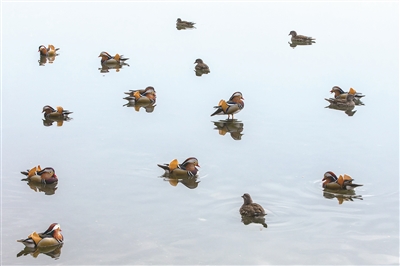 昨日西湖,鸳鸯成群。 记者 陈中秋 摄