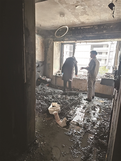 物业工作人员告诉记者,佳兆业·棹月雅府小区是去年1月份精装交付的。记者在现场见到失火的8幢3楼共4户人家,失火这户人家卧室损失严重,整个床都没有了,仅剩下地上一堆席梦思铁架,整个床头的木板也都烧没了,床头柜也烧毁了,卧室的卫生间也损毁严重,另外厨房客厅均有受损,全屋都是黑烟附着。
