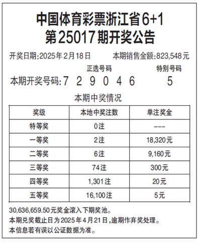 中国体育彩票浙江省6+1