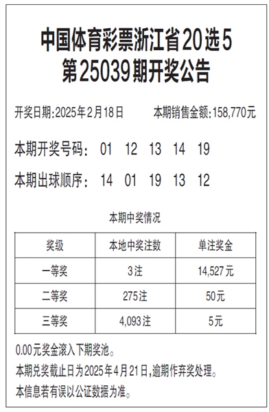 中国体育彩票浙江省20选5