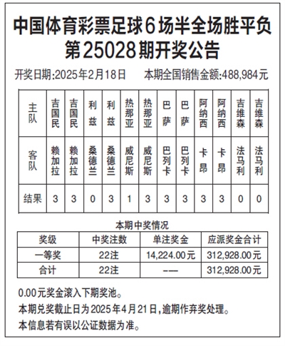 中国体育彩票足球6场半全场胜平负