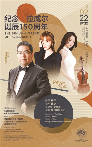 如果你喜欢拉威尔油画一般的钢琴乐曲和管弦乐作品,一定不要错过本周六这场音乐会:2月22日19:30,在杭州大剧院·歌剧院,杭州爱乐乐团艺术总监兼首席指挥杨洋携手杭爱的老友钢琴演奏家陈萨以及小提琴演奏家黎雨荷共同演绎法国著名作曲家莫里斯·拉威尔的经典作品,包括《丑角的晨歌》、G大调钢琴协奏曲、《悼念公主的帕凡舞曲》、小提琴与乐队狂想曲《茨冈》、《西班牙狂想曲》。