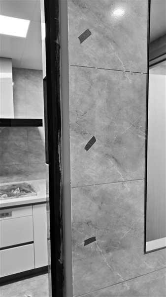 吴女士家厨房,多处瓷砖检测出空鼓。