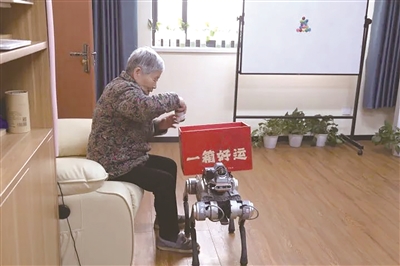 “赵奶奶,12点了,你该吃药了。”小西提醒老人。说完,它趴下来,乖乖地等着老人吃药。小西已经在金秋家园民生综合体上岗一个月了,很受大家的欢迎。这几天,它背着药箱,“哒哒哒”地穿梭在走廊和庭院间,用语音提醒老人们要按时服药。“我的记性不好,老是忘记吃药,有了小西的提醒,一日三餐都能按时吃药了。”赵奶奶说,小西就像一只真的宠物狗,只要发出散步的指令,它就能立马站起来,跟在身边,“有小西陪着,有安全感,走在路上,回头率也很高嘞。”