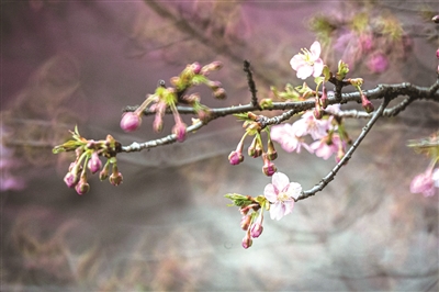另一场春日私语,在杭州植物园。没有任何预告,水生植物区的早樱悄悄地开了,开花率7%左右。它们像是嗅到了湿润泥土里冒出的春意,又或许是瞧见隔壁梅林正开得热闹,所以,悄悄地探出了脑袋。再过几日,樱花的浅绯云霞便会赛过梅林的红白浪潮,在3月暖风里演绎一场此消彼长的春日交替。