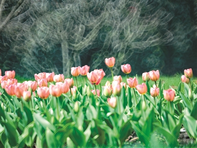 目前,整个太子湾公园郁金香开花率约7%,主要集中在手拉手雕像旁,玫红色、粉红色、嫩黄色……它们的花期提前了许多,迫不及待地要晒出自己最美的“容颜”。就像一群赶早课的孩子,冲到春天面前说:“我们来啦!”