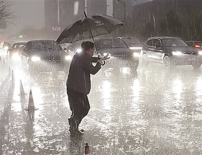 记者联系上吴斌老师时,他刚用吹风机吹干裤子。常在雨中护学,所以他的办公室里常备吹风机。“我穿着雨靴,也撑伞了,但是有一阵儿雨太大,身上外套和裤子都湿了。”他说。