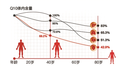 随着年龄的增长,人体内的辅酶Q10也会随之减少,尤其是心脏中的辅酶Q10会减少更多。