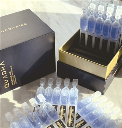 1.夸迪焕颜凝萃蓝铜胜肽次抛精华液(蓝抛2.0版)。1.25ml一支,30支一盒,优享价268元,赠品:夸迪焕颜凝萃蓝铜胜肽次抛精华液1.5ml/15支,等于到手45支。